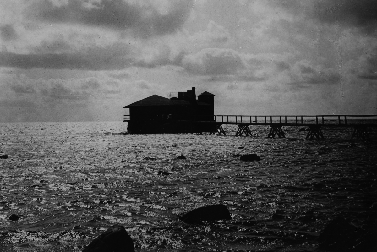 Text till bild 1: Första kallbadhuset på Falkenbergs strand. Anlades på 1800-talet. Sedan "Patriks badhus".