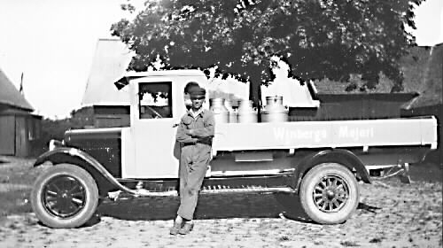 På lastbilen står det Winbergs Mejeri. På baksidan av kortet står det Chevrolet, kortet taget i början på 1930-talet i Stenastorp.