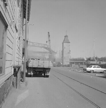 Rivning av elevatortransportör över Hamngatan.
