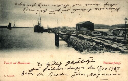 Vy över yttre delen av hamnen, sedd ut mot havet.