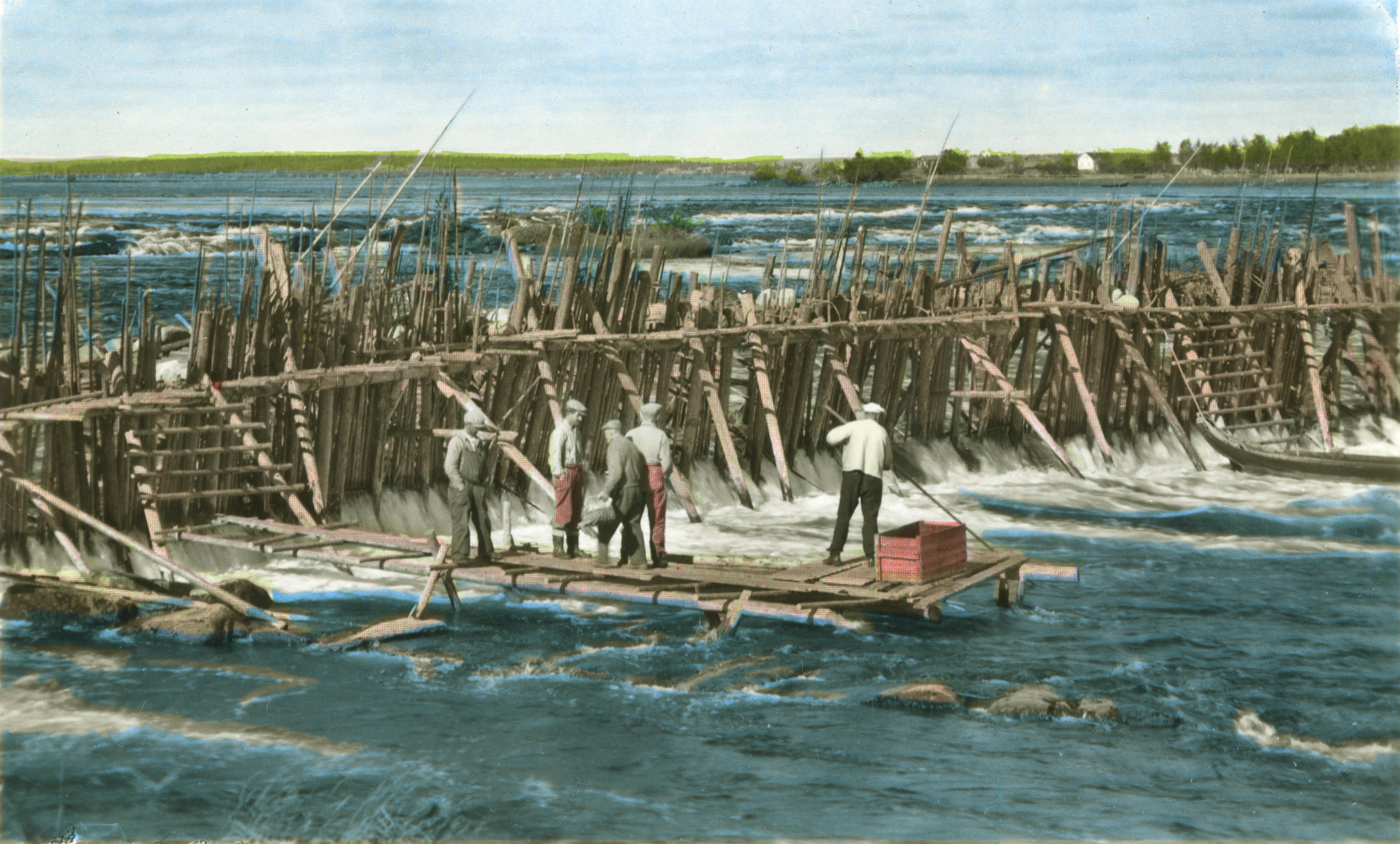 Sikfiske i Kukkolaforsen i Torne älv. Handkolorerad variant av ac00995.