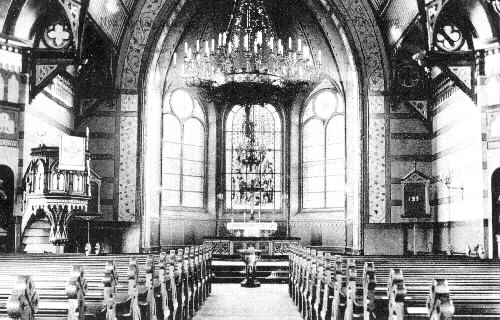 Foto före den invändiga ombyggnade som skedde 1957-58. Se "Kulturhistorisk undersökning Kv. kyrkan prästgården m. fl." På baksidan av bild 2 står senast 1927.