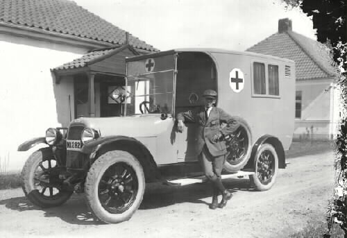 Falkenbergs första ambulans. Museets kommetar: Bilens reg. nr. N 1282.