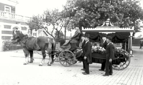 Hästanspänd likvagn. Stoftet efter den unge smedgesäll Gottfrid i Olofsbo, som dog i militärtjänst. Uppgifter från Morupsboken.
