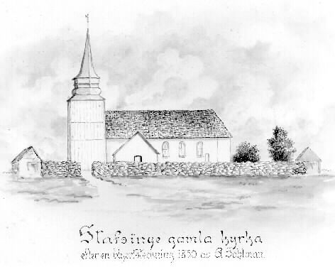 Text enl. inv. kort nr. 2748: Kyrkan torde vara byggd på 1200 talet. Nedrevs 1862. Bilden en förstoring efter en blyertsteckning av A. Soholman i Riksarkivet 1830. Förstoringen utförd av Filip Pärson.