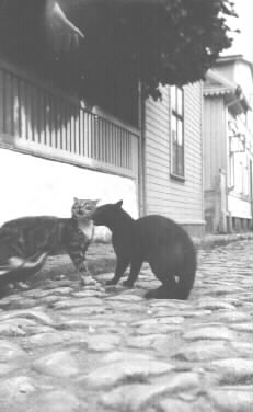 Bilden återfinns i boken Patrik Johnsons Falkenberg på sidan 94, med texten Fröken Minnie Bomans hand och fot och svarta katt.