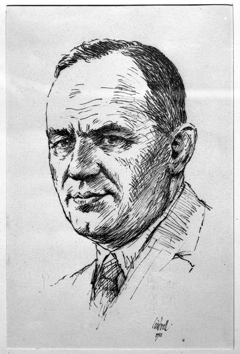Tecknat porträtt av veterinären Sigbert Jerlov