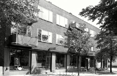 Byggnaden uppförd 1932 av Falkenbergs kooprativa Handelsförening. (försl.t.bev.pl.) I fastighetens bottenplan finns affäreooprativa och Mafa.
