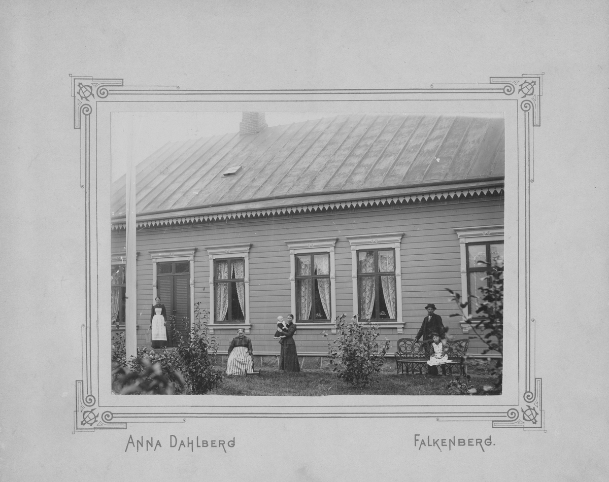Huset uppfört av skeppsagent Sven Boman 1889. Inrymmer idag Galleri Flamingo, ägare herr o. fru Pettersson. Text på baksidan: Sven Bomans hus och familj vid Stationsgatan