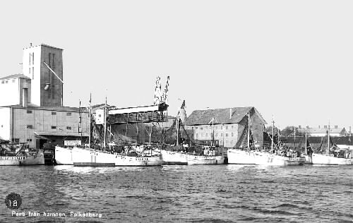 Fiskebåtarna är väl utmärkta med neutralitets- beteckningar, detta binder bilden till perioden 1939-1945.