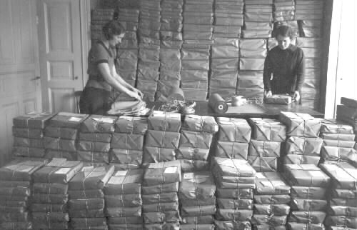 Ung Center 1935-37.Provisorisk korslista/kommunarkivarien. SLU-bladet packas. M Lending till vänster.