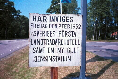 Titel: Bild 1: Originalskylten från 1952 uppmonterad vid motellet 1994 för fotografering.