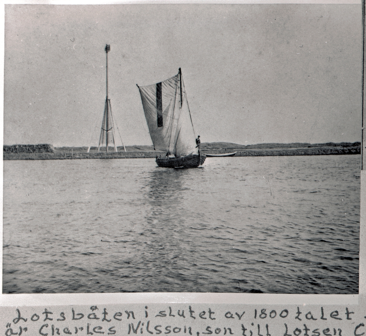 Stora lotsbåten vid slutet av 1800-talet. Ifören stående Charles Nilsson (Ur Ekmans klippbok).
