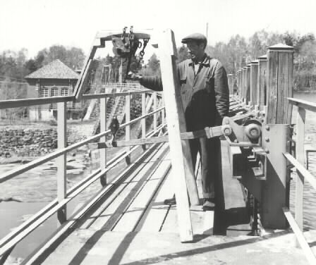I bakgrunden Yngeredsfors gamla kraftstation. Kraftstationen revs 1964.
