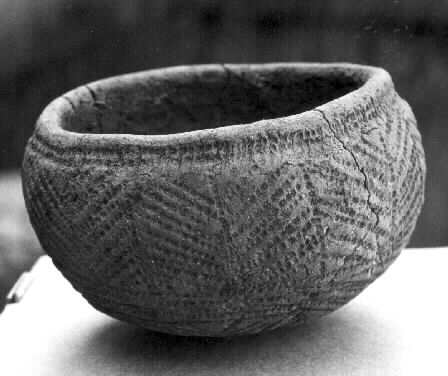 Keramikkärl från en stridsyxegrav daterad till 2300 f.Kr., funnen vid utgrävning 1989 vid Sannagård, Vinberg.