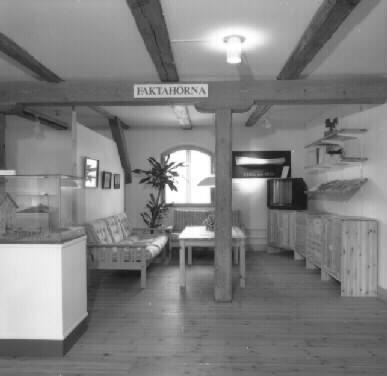 Foto över basutställningar på museets tredje plan.