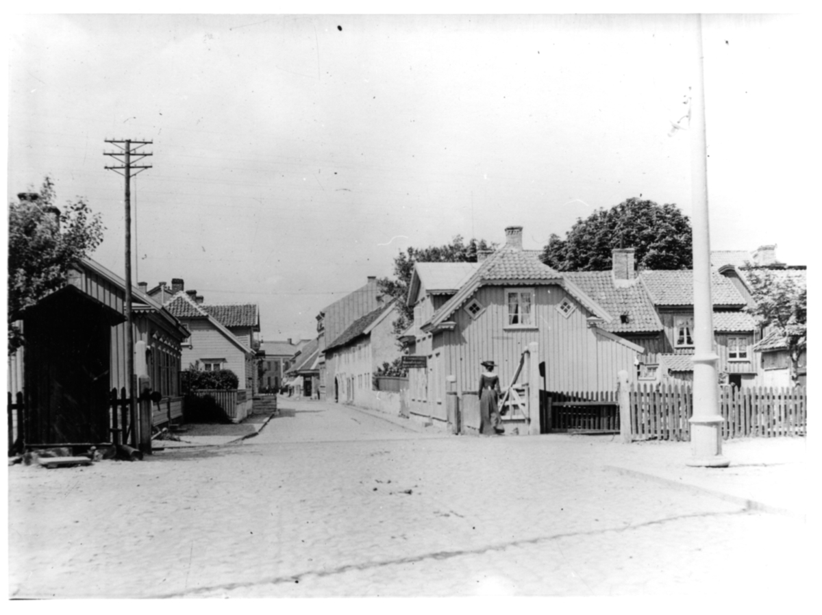 Vy från korsningen Storgatan/Hallanäsgatan mot Rådhustorget (då: Stortorget)