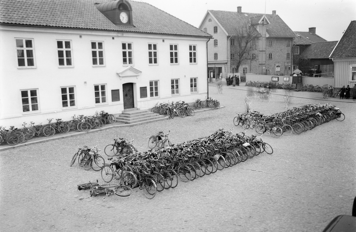 En stor skara cyklar parkerade på Rådhustorget (f.d. Stortorget)