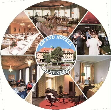 Grand Hotel byggdes 1930 av Falkenbergs Hotell- och Restaurantaktiebolag efter ritningar av arkitekt Ernst Torulf.