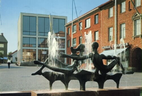 Stig Blombergs fontänskulptur Salami och Zulamith i brons kunde placeras på torget 1965 genom en donation av Anna Tjäderberg.