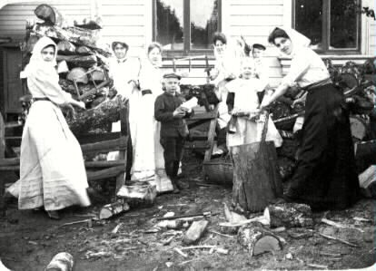 Enl. uppgift på baksidan av fotot. Troligen farmor Gerdas personal på Järnvägshotellet. Farbror Erik synes och troligen Jane samt möjligen Rolf.