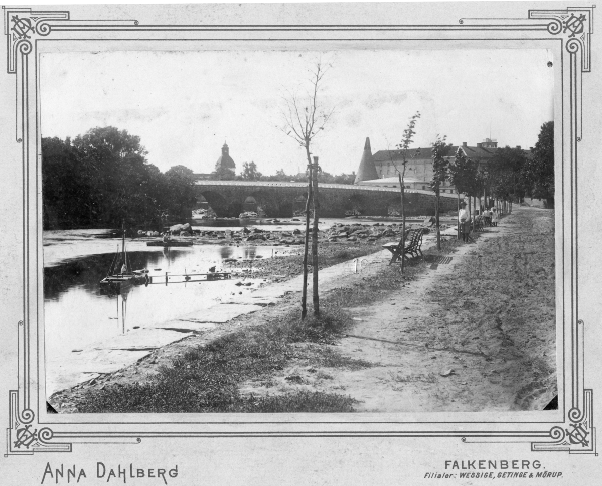 Tullbron kv. Gästgivaregården mm. sett från Ätrans nordvästra strand.