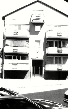 Fasaden på HSB:s 3 vånings lamellhus före renoveringen 1988. Bild 2 Hallands länsmuseer 1982