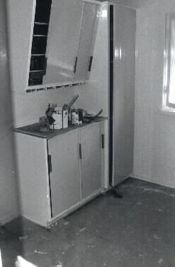 Uppbyggnad av bostadens kök på andra plan. Finns i fotopärm "Museet uppbyggnad" totalt 20 st fotografier.