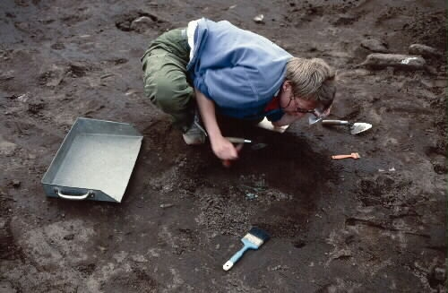 Spännbuckla i matjorden, funna vid utgrävning 1989 vid Sannagård, Vinberg.