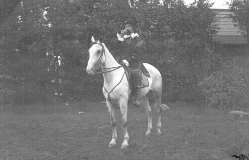 Från ett programblad från midsommarafton och midsommmardagen 1907:Står bl.a. Karnevals- fästen i Falkenberg. Kl. 1 e.m. Ridande härolder kungöra fästens början. Men man kan ej med säkerhet säga att det hör ihop med bilden då flera karnevaler har förekommit. "Museets kommentar"