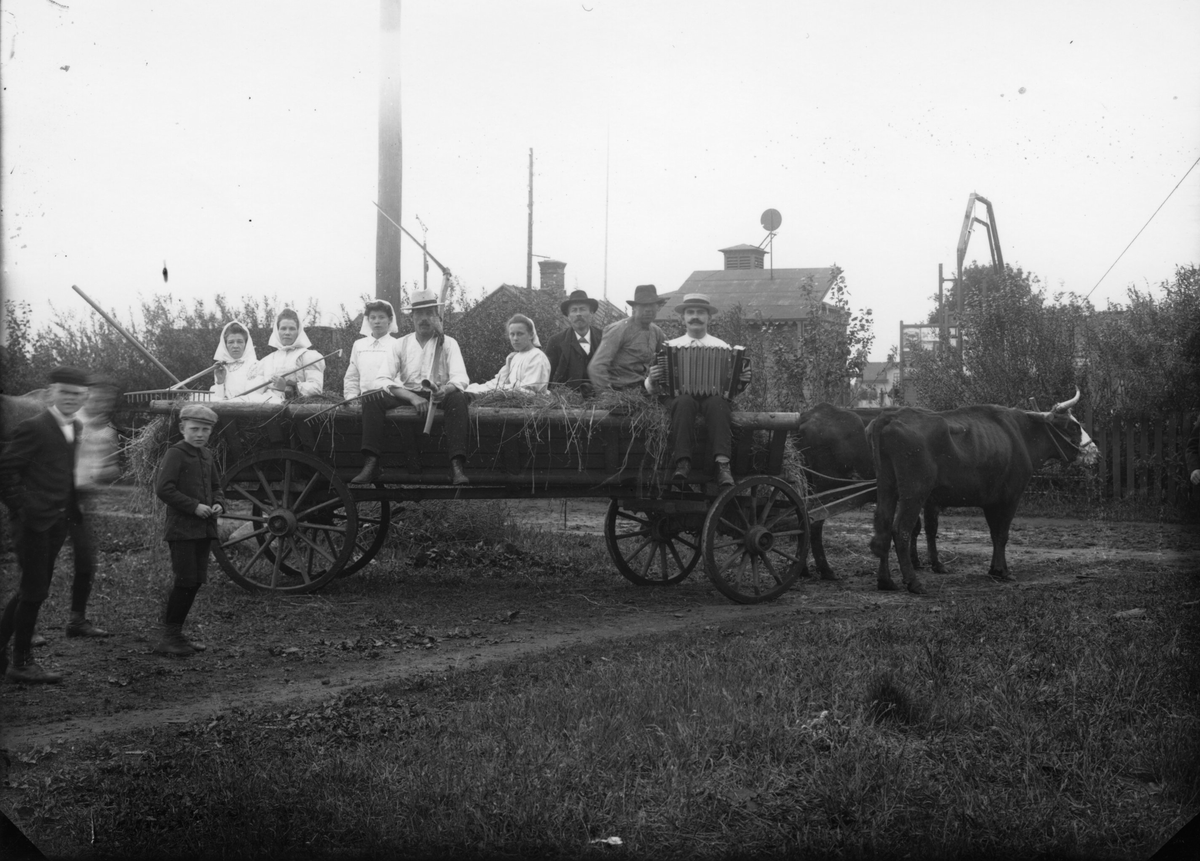 Titel: Från ett programblad från midsommarafton och midsommmardagen 1907:Står bl.a. Karnevals- fästen i Falkenberg. Från en tidningsannons i Falkenbergs Posten den 22 juli 1907 kan man läsa Hantverks-Karneval söndagen den 28 juli. Men man kan ej med säkerhet säga att ovanstående hör ihop med bilden då flera karnevaler har förekommit. "Museets kommentar"