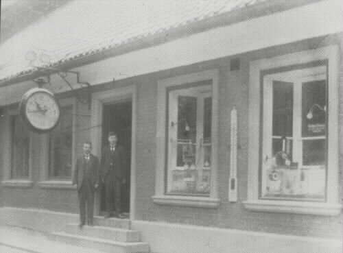Huset uppfört efter 1823 års brand. Skyltfönster insattes 1901 men de nuvarande tillkom 1931 och 1938. ( förslag t. bevar.)