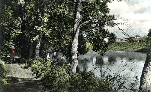 I bakgrunden syns Fajans Tegelbruk samt Falkenbergs polisens skjutbana och klubbstuga, den lilla stugan med rött tak.
