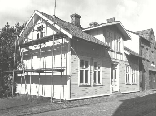 Byggnadsår 1863, på- och tillbyggt (mot söder) 1904, ombyggt 1986. Byggherre L P Bergström. Kruk- och kakelugnsmakareverkstad har funnits på tomten 1822-1865.