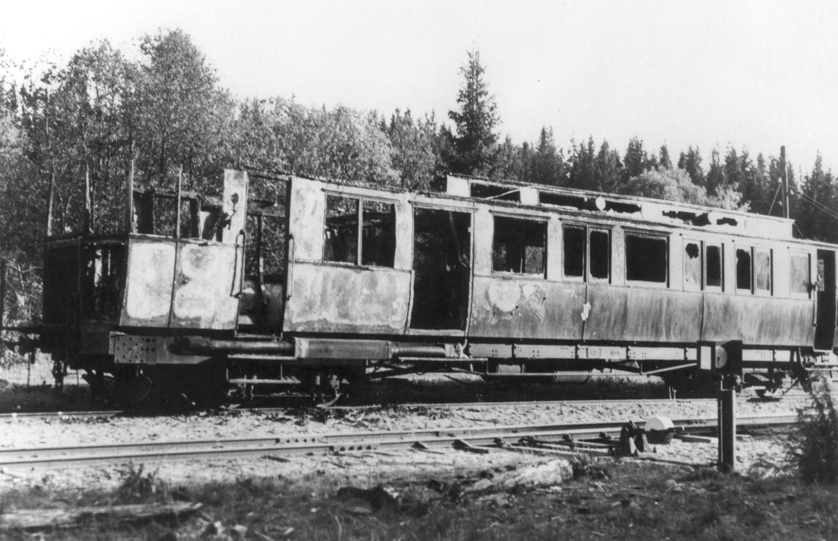 FJ:s motorvagn nr 1 "Skogsbobåten". Kom till FJ 1925.Brann upp i Strömsfors 1937. Uppgifter från boken Falkenbergs järnväg, Leif Elgh.