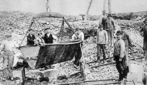 Stenhuggeri, Söndrum. I kusttrakterna mellan Halmstad och Varberg är stenindustrin en viktig binäring. Här tillverkas gatsten, byggnadssten och makadam, huvudsakligen för export.