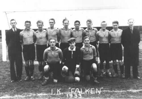 Text på foto I. K. Falken 1925. 2:e fr.v. Billing, x, Nordh, "Mafa Erik", Tage,x,x, Gunnar Nordh o. okänd. Främre raden fr.v. Otto Nilsson, Gunnar Johansson o. Marin Persson. Namnuppgifter av Erik Gustavsson Fbg.