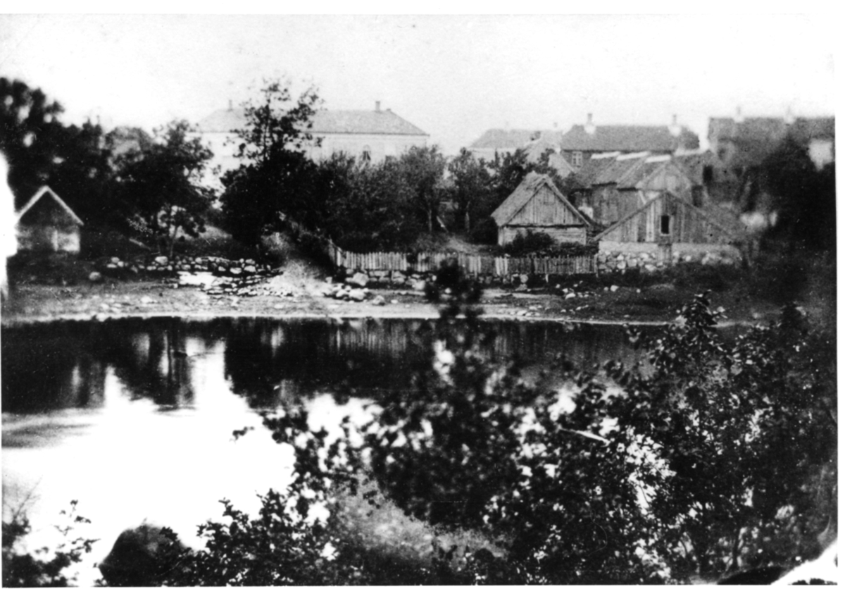 Staden sedd från Doktorspromenaden. I bildens mitt synes borgmästaregården till höger därom rådhuset. På baksidan fanns även följande text: Borgmästaresträtet med borgmästaregården nu Hotellgatan. Från f.d. Fbg:s museum finns ytterligare en kopia med inv. nr 1470. Ytterligare två "äldre" kopior finns , en i kommunarkivet "blått album", en i Bratt albumet.