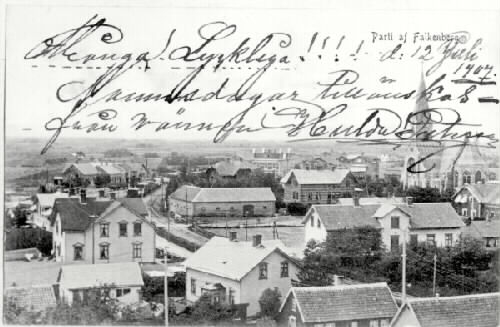 Originalkopian inlånad från Ulla Fältström för reprofotografering. På fotot står skrivit. Många lyckliga !!!!.. d: 12 juli 1907. Namnsdagar tillönskas från vännen Hulda Peterson.
