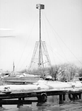 "Lastan" flyttas från sin gamla plats långt upp på land ut på södra hamnarmarna. (Utdrag ur femårsberättelserna 1861-1865). På bilden är Lastan uppställd vid "slipen" på Skrea sidan. Lastan låg ned monterad under några år på 60-talet och in på 70- talet. Den monterades upp på 70- talet ute på området som utfylldes för Vin &Spritcentralens anläggning.