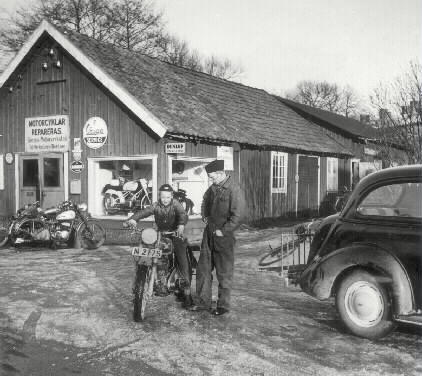 På motorcykeln Ove E t.h. Göran J. Göran J hade verkstaden i 7år 1948-1955. Motorcykelns reg.nr N 2175.
