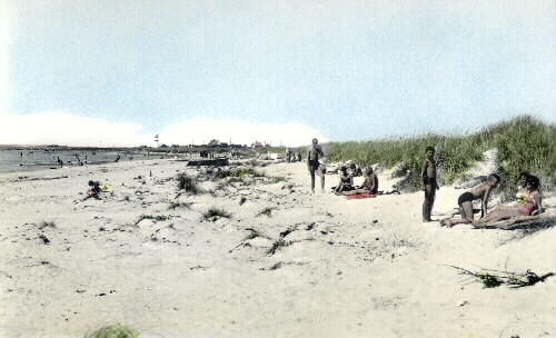 Strandlinjen med Morups Tånges fyr i fjärran. Museets kommentar Fyren Morups Tånge byggdes 1842 och 1 nov 1843 tändes fyren för första gången.