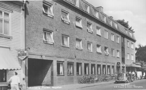 Affärer som syns på bilden, Nya Bazaren filial, Posten, Dahlgrens bokhandel.