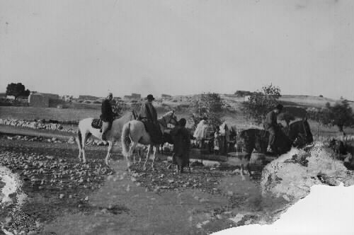 Titel: Text på baksidan av bild 1: Jaktsällskap i öknen.Två fr.v. Karin Johnsson. Bild 2: Jaktsällskap återvänder, längst t.v. HARITH Ibn Hassan, schejk.