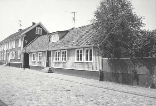 Byggnadsår 1847, ombyggnad och vindsinredning 1975. Byggherre J Kjellberg. I byggnaden har ursprungligen funnits bodinredning och på gården en målarverkstad (1878) och en tunnbidareverkstad (1937).