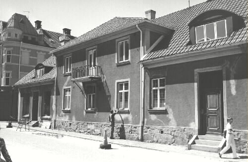 Byggt år 1861 som bostadshus med ett rum "inredt till Salubod". Tillbyggt 1899 och ombyggt 1928. Byggherre Carl Lundgren. Apoteksinredning noteras i brandförsäkring 1874. Byggnaden har inrymt apotek fram till 1959.