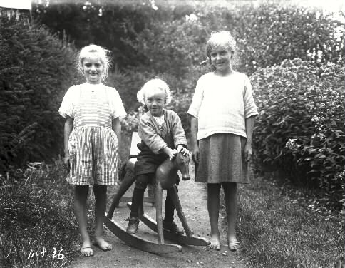 Fr.v. Rosa, Per o Karin i äppelträdgården i Attarp. A Fridolf Persson var lärare i Årstad 1904-1912, Fritsla 1912-1920, Släp 1921-27 och Skrea 1927-41. Enl. sonen Einar Persson.