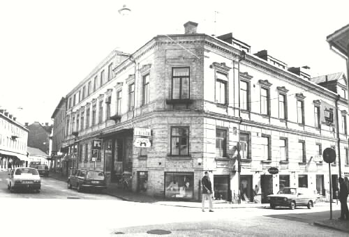 Byggnadsår 1879, (om- och påbyggnad bl a 1932 och 1938) respektive 1880. Byggherre "Spirtuosabolaget". På affärsskyltatna kan man läsa PK Banken, Chcong Wah, Salong vi två, Herr Frisör, Västgöta, Damfrisering, Wijklunds och Skotjänst Klackbar