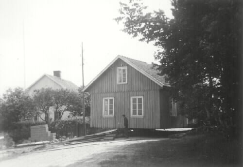 Medföljande text till fotografierna. Fiskare flyttar sitt hus för andra gången på 30 år.År 1905 uppförde fiskare Gustav Johansson en en familjsvilla i Stafsinge, år 1926 flyttade han huset till Strandridaregatan. 16 juni 1956 flyttades huset till Sanddynevägen. Nores Gustav kunde till och med koka kaffe och laga mat under färden.