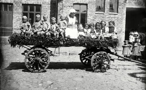 Från ett programblad från midsommarafton och midsommmardagen 1907:Står bl.a. Karnevals- fästen i Falkenberg. Från en tidningsannons i Falkenbergs Posten den 22 juli 1907 kan man läsa Hantverks-Karneval söndagen den 28 juli. Men man kan ej med säkerhet säga att ovanstående hör ihop med bilden då flera karnevaler har förekommit. "Museets kommentar"